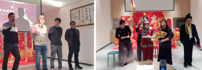 年会晚宴上,大家卸下工作的疲惫,举杯换盏,谈笑风生。多才多艺的伙伴们带来了精彩的表演,歌声、笑声、欢呼声交织在一起,